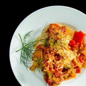A rich and juicy, subtly interesting gratin. Great on its own with a chunk of rustic bread, or goes perfectly with a steak.