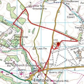 We head out around the airfield perimiter fence before joining 'Green Lane', and heading West to the northern edge of Heythrop Park. For slightly a shorter (but less pleasant) route, leave the airfield by the main entrance and turn right along the B4022 (no footpath) for about ½ mile and turn right into Green Lane.